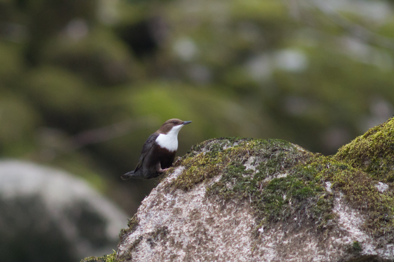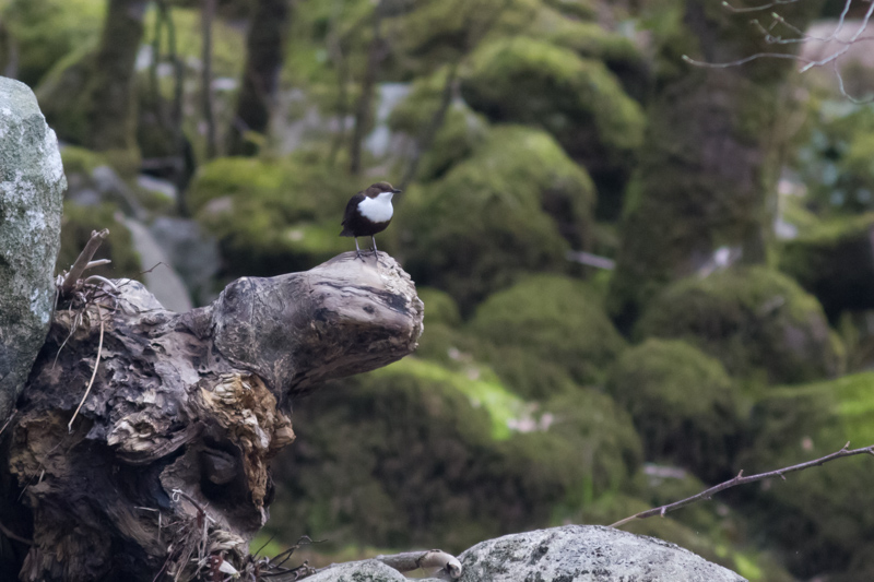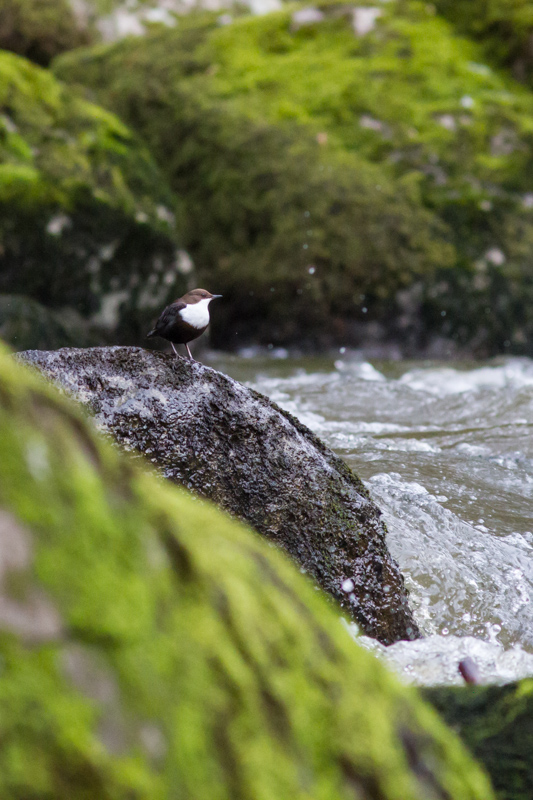 Le Cincle plongeur est un oiseau brun et blanc de la taille d’un merle. Il trouve sa nourriture, larves de phryganes et d’éphémères, en retournant les pierres du lit de la rivière. Il plonge la tête la première dans l’eau jusqu’à s’immerger complètement.