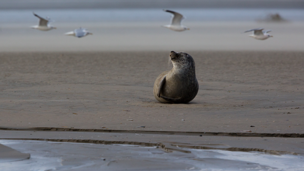 Le phoque commun (Phoca vitulina) est également appelé Veau marin. On le rencontre principalement dans la baie de Somme et la baie d’Authie. Accompagné de deux amis photographes, c’est dans cette dernière que nous sommes allés les rencontrer.
